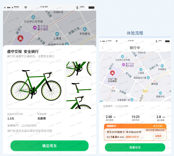 真實(shí)還原生活中的共享單車。通過(guò)平板電腦上的單機(jī)版共享單車APP,掃碼開(kāi)鎖,開(kāi)鎖配有語(yǔ)音提示和教學(xué)教程;還車時(shí),一鍵點(diǎn)擊關(guān)閉車鎖,系統(tǒng)便會(huì)提示“還車成功”。整個(gè)軟件采用藍(lán)牙技術(shù)開(kāi)鎖關(guān)鎖,確保信息安全。